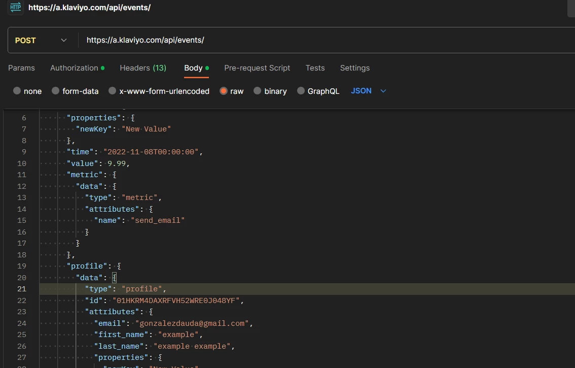Hello, my question is the following, I want to make a custom event, send_email, I added this event through an API, the idea is that an email is sent through a flow every time that event is triggered, the problem lies in the configuration of the flow or somewhere that the email is never sent and I have no way to check if it was executed or not, I attach the images of the postman, flow and the event. Thank you