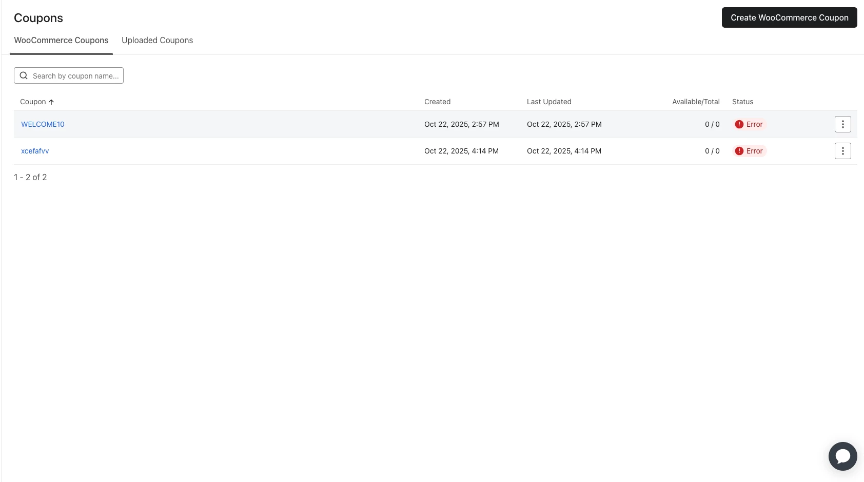 In WooCommerce, I created a coupon and then used the ‘Create WooCommerce Coupon’ feature in Klaviyo. However, after creating it, Klaviyo reported that the coupon was invalid. Does anyone know how to fix this issue?