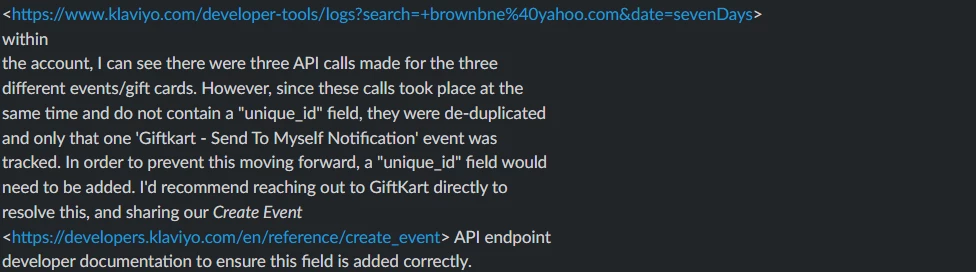 Our use case requires sending multiple emails (approximately 5–10 emails to same customer --- rarely who order or place multiple times) based on the same event, as multiple cashback transactions are processed in bulk during the day. The custom event is being captured correctly every time, and we have implemented a unique_id for each event as per Klaviyo’s Events API documentation. Flow re-entry is enabled, and Smart Sending is disabled.