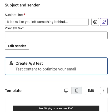 Test the actual email itself - you can create a B variant of the individual email/SMS inside of the flow. This can be done through the email editor, and this will allow you to A/B test on the content of the email (example - subject line, content inside email etc). More information about that in this article.