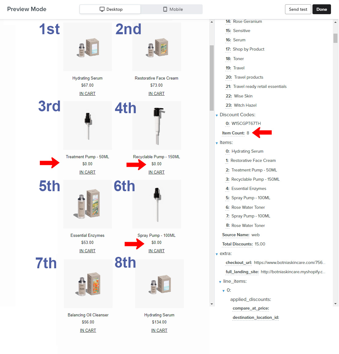 1. Free products ($0) shouldn't appear in the email.