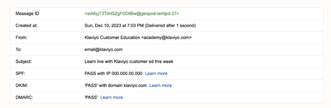 Are you noticing SPF and DKIM failures when you send an email and then inspect the email header itself? To do this (in Gmail), you can click into the email, then click the 3 dots on the right side of the email, selecting “Show original.” After doing this, you should see a header that looks like this: