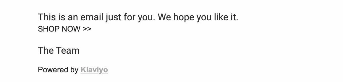 However, when I send a test email, the SHOP NOW >> button still appears as plain text and is not clickable.