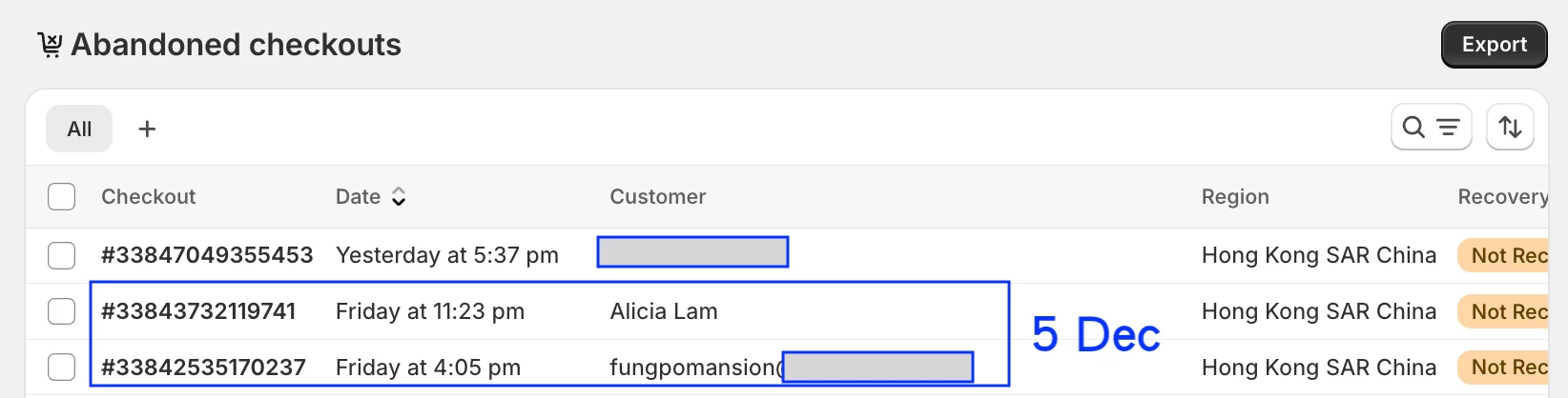 When the same customer starts multiple checkout sessions using different browsers or devices (e.g., PC and mobile), Shopify creates multiple abandoned checkout cases.