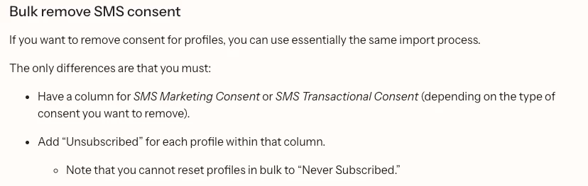 When loading customer profiles with SMS marketing consent via CSV file and set the consent status to ‘Unsubscribed’, when it’s loaded into Klaviyo, it is loaded as ‘Never subscribed’.