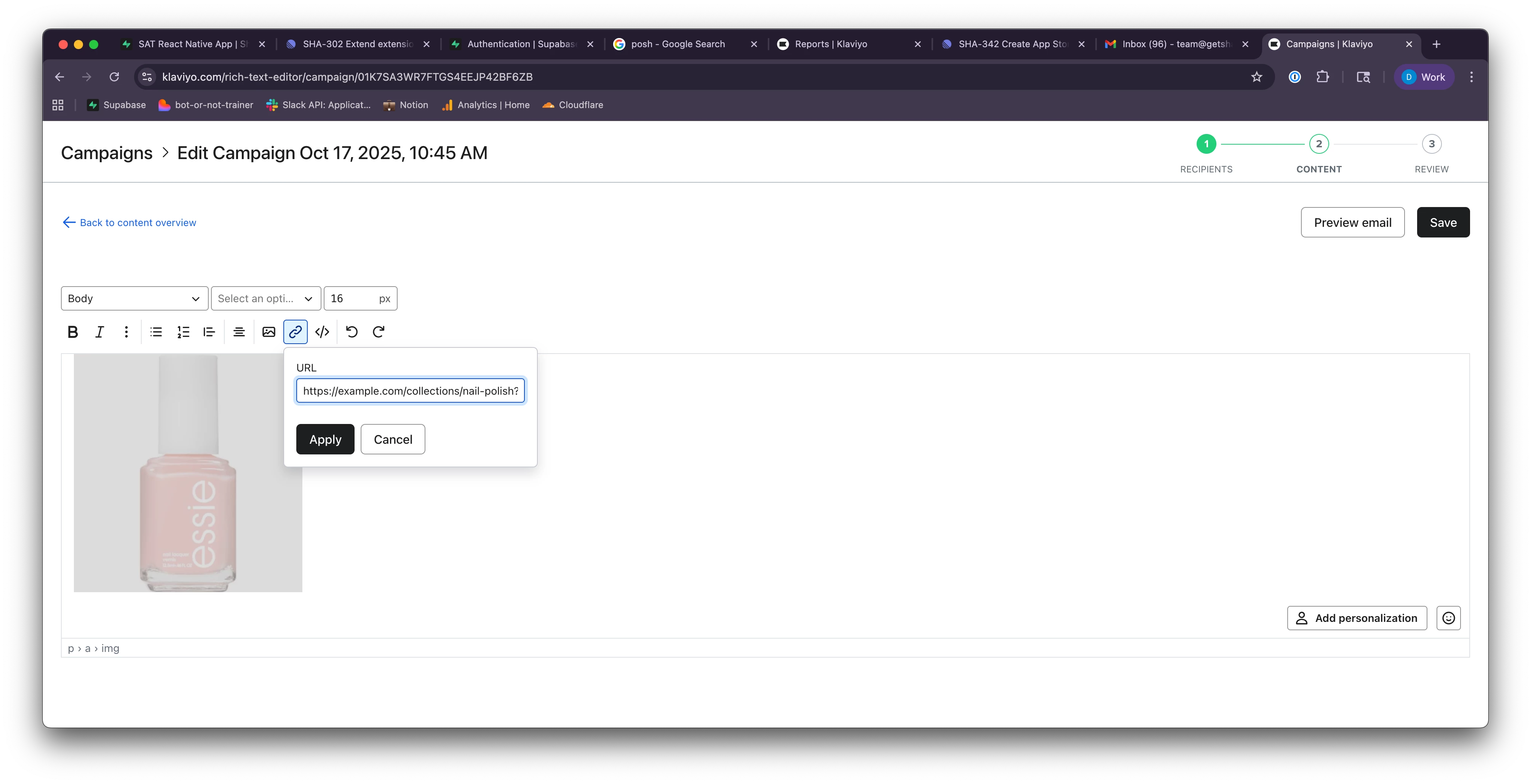 You can definitely add static product recommendations here, using images and links. Can you share more info on why you’re trying to do this in the text-only editor vs. klaviyo’s drag-and-drop editor?