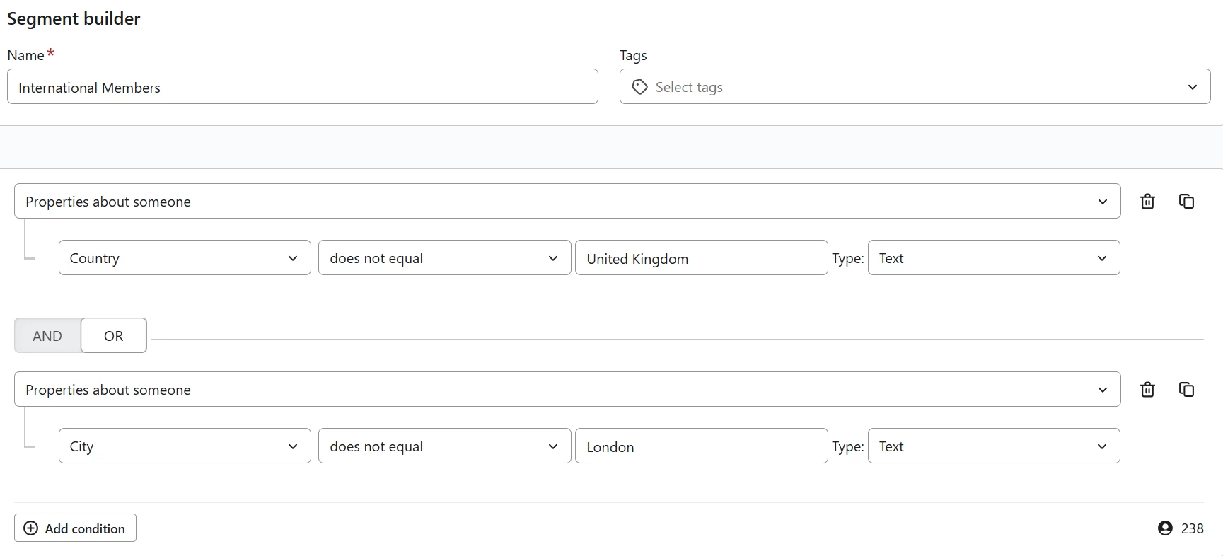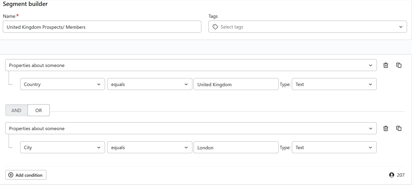 Below is a segmentation made to segment only members/prospects within London and/or the United Kingdom.