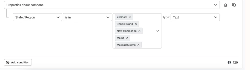 Is there a way to create a flow filter that uses "includes any of" a property instead of "equals" property. This makes it cumbersome to add each item one by one and already exists in segment builder.