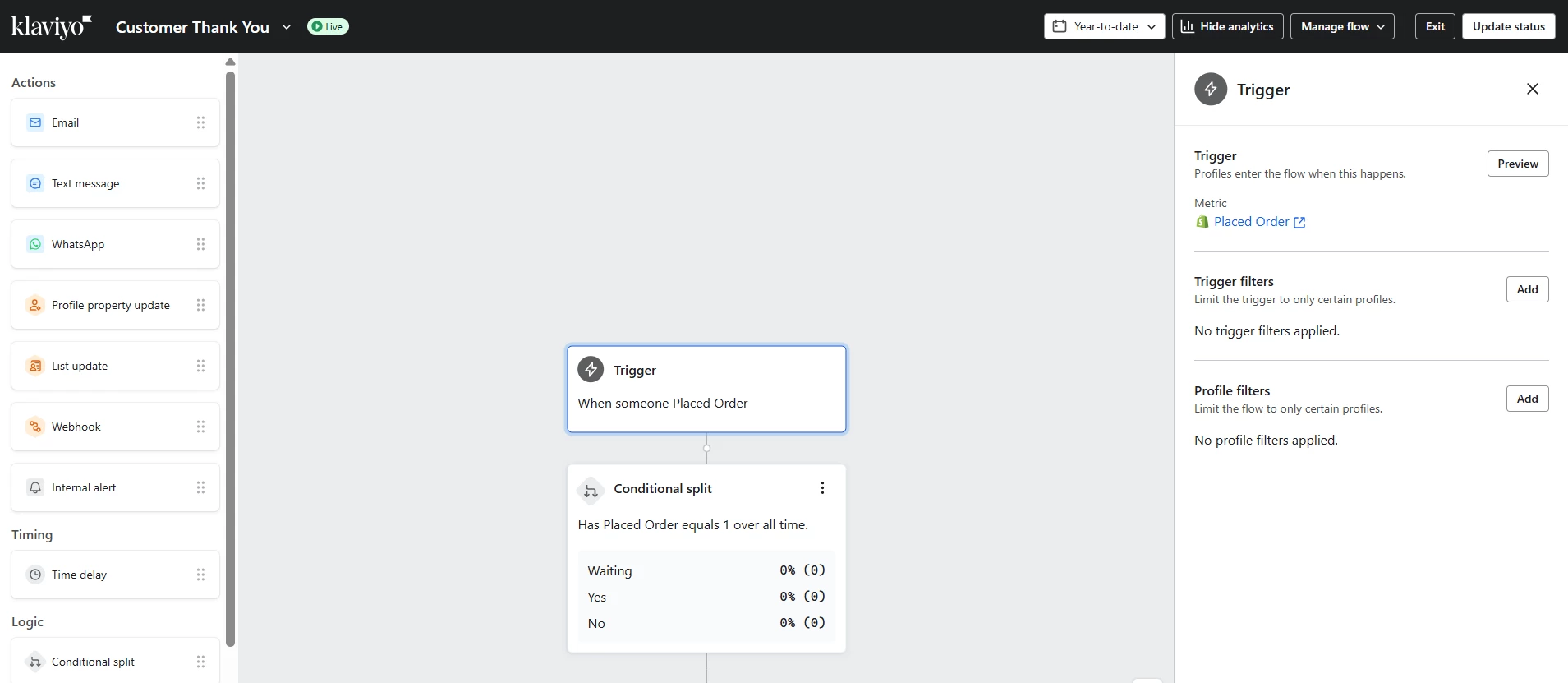 I have a Thank you flow not sending to my customers. I have tried creating new flows, duplicating, adding past profiles and also got a colleague of mine who specialises in Klaviyo to take a look and confirm it is set up correctly.