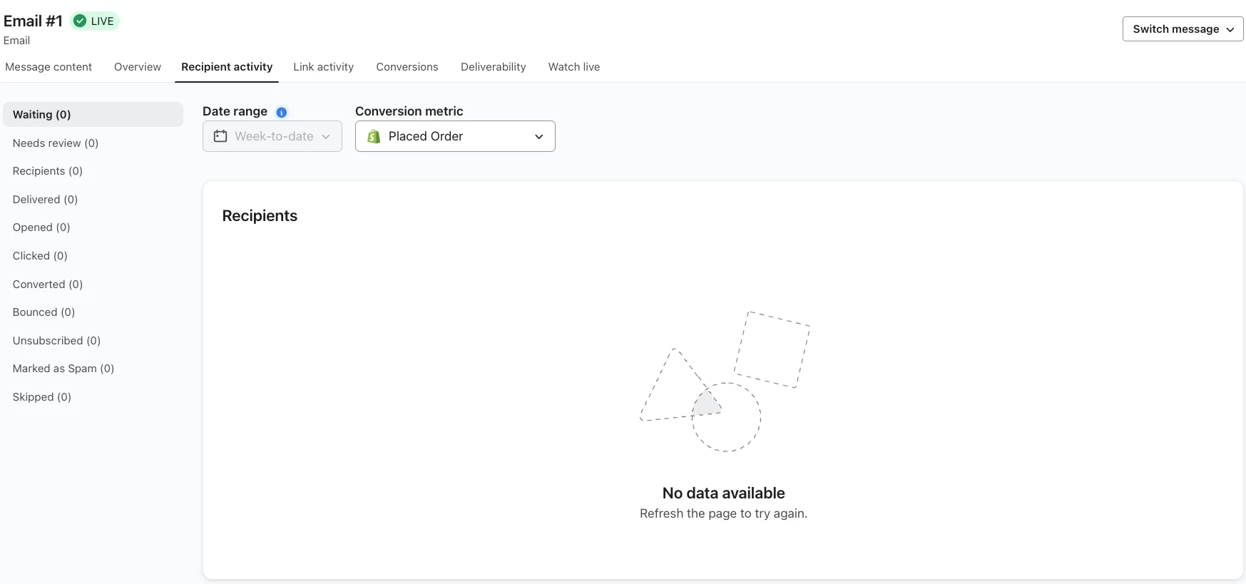 First, make sure the second email is set to Live, not Draft or Manual. Even if the first email sent, the next one won’t go out unless each message is live.