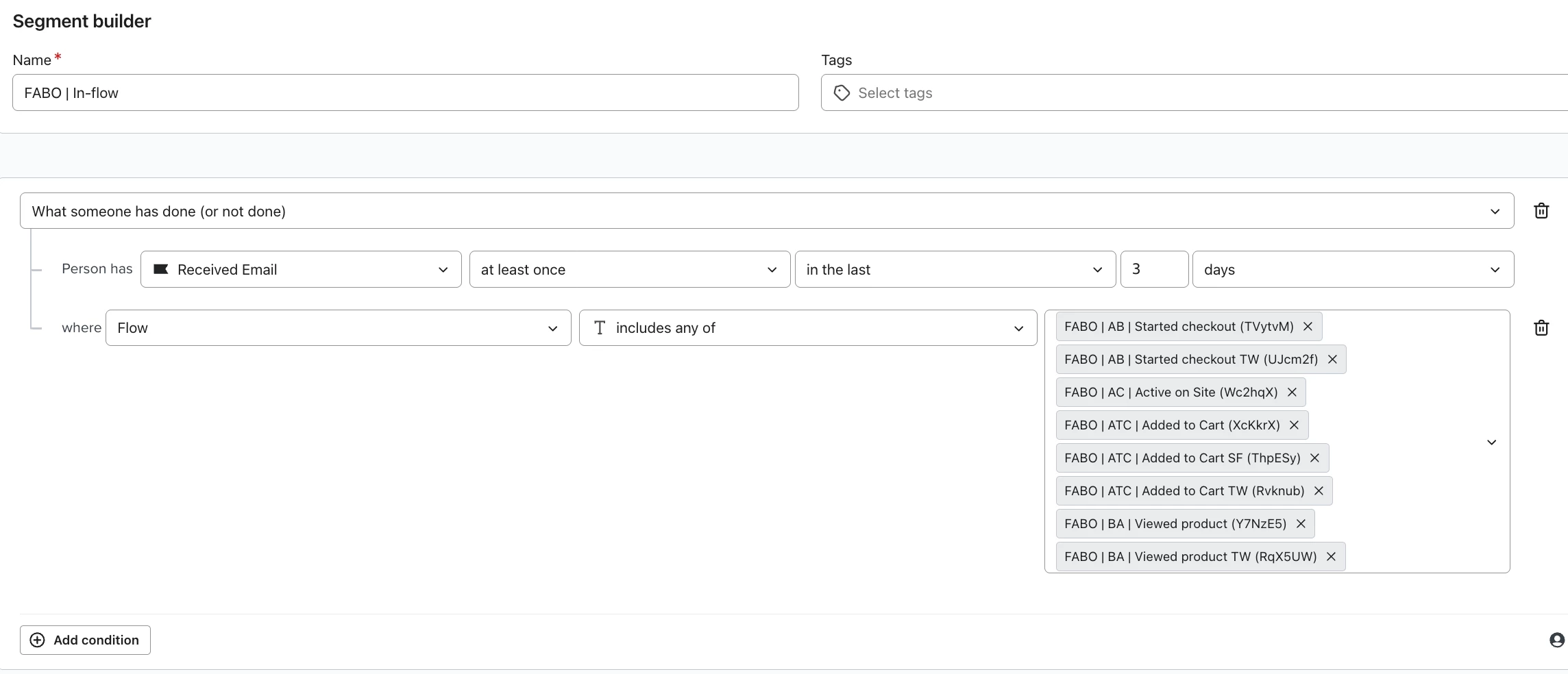 I want to create a segment that all subscribers that still inside the flows so I can exclude them on my campaigns. Basically if there’s still in the automation I don’t want them to receive any campaigns as I don’t want to interrupt the flow of the messaging to the subscriber in my flow.